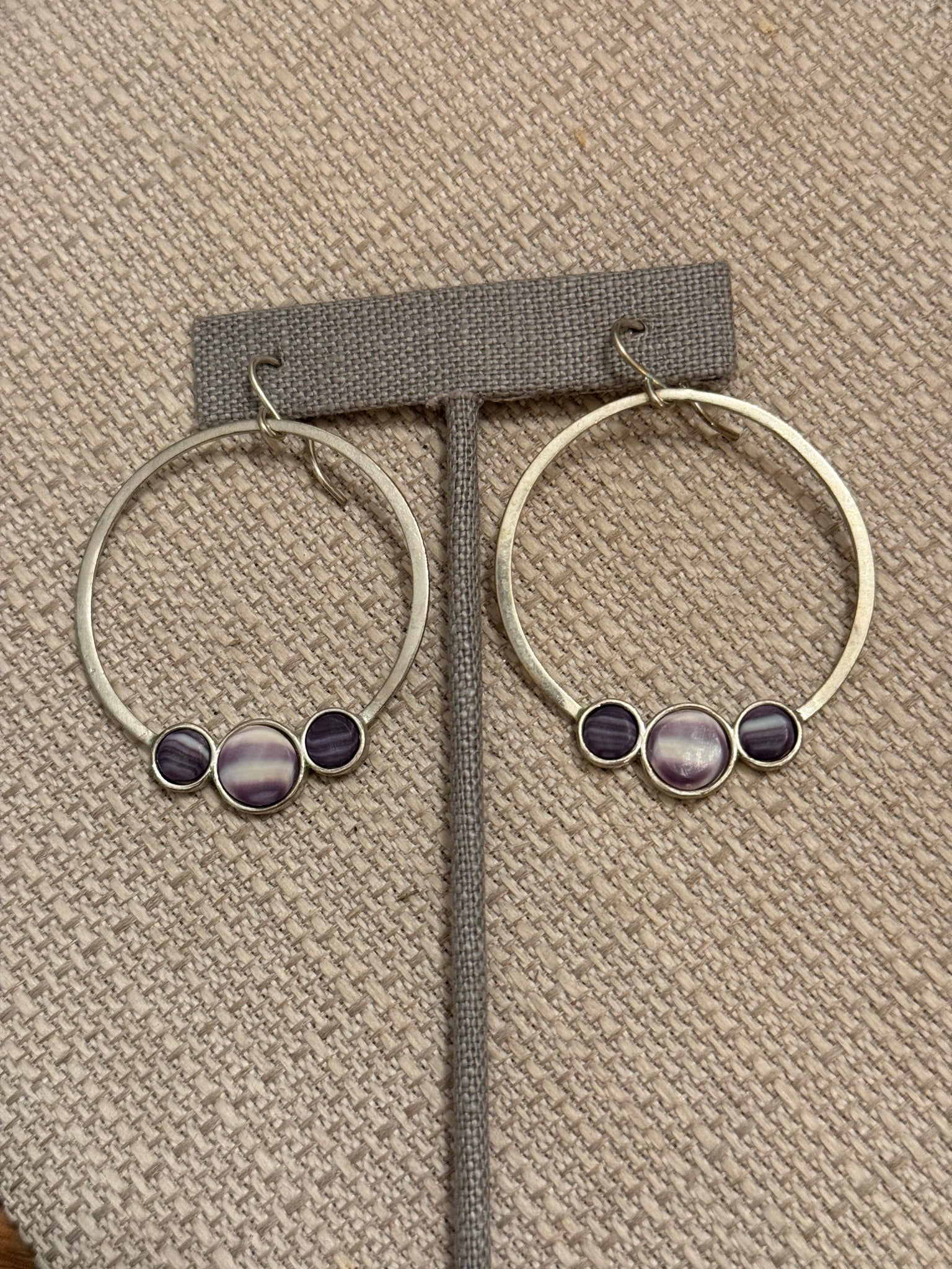 .925 sterling silver hoops with 3 bezel wampum cabochons in each earring